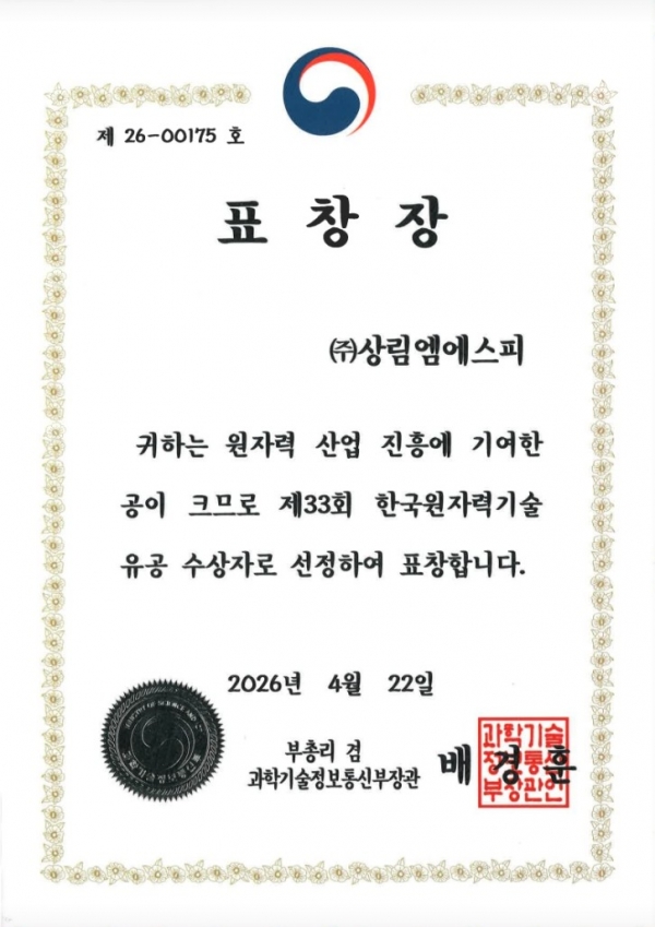 Korean Nuclear Technology Merit Commendation Award Recipient